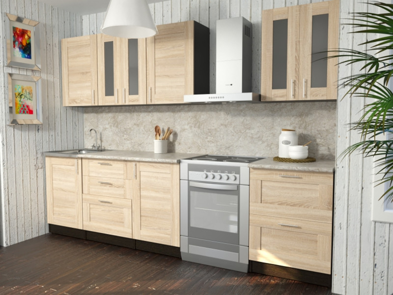 Мойка, смеситель, стеновая панель и посудосушитель в комплект гарнитура не входят.
