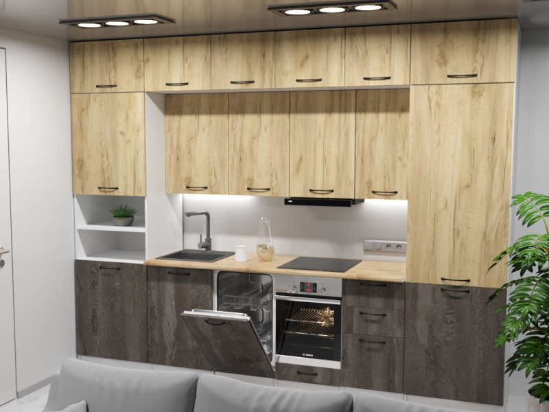 Мойка, смеситель, стеновая панель и посудосушитель в комплект гарнитура не входят.