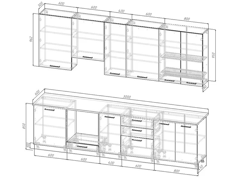 - Кухонный гарнитур Старое Дерево 3000 (верх 950 мм) МДФ