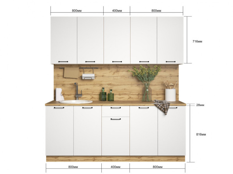 - Кухонный гарнитур Валерия 2000 мм МДФ Вотан/Белый