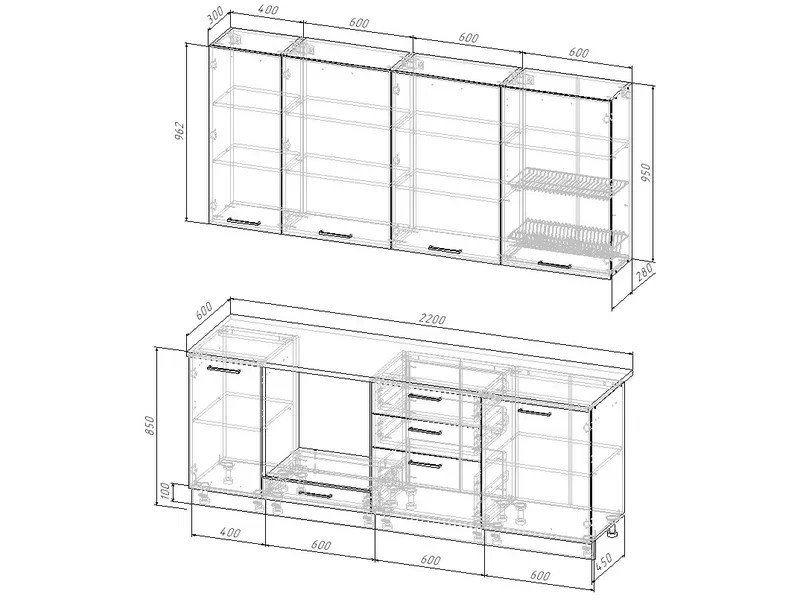 - Кухонный гарнитур Вегас 2200 (верх 950 мм)