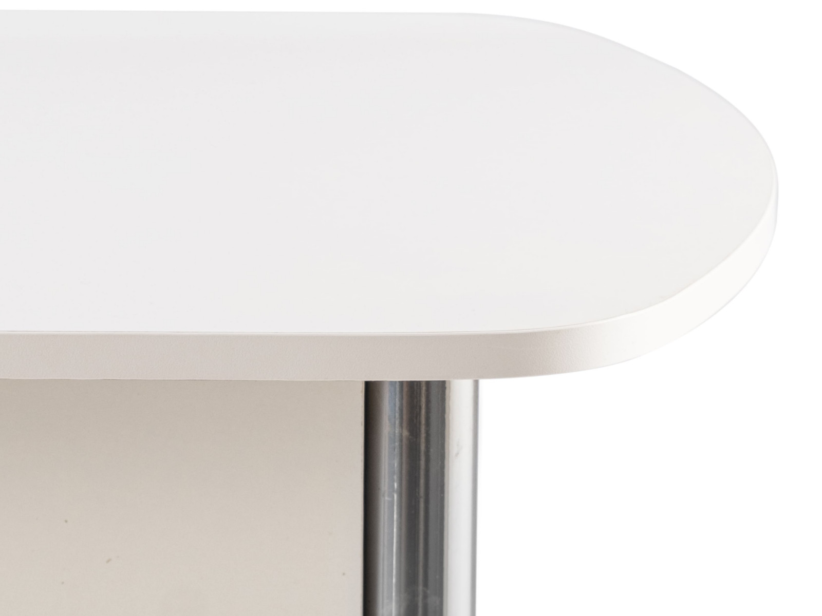 - Столешница и вставка в едином цвете, из прочного ЛДСП 16 мм, с надёжным механизмом, металлические хромированные ножки с защитными колпачками, которые уберегут пол от царапин.