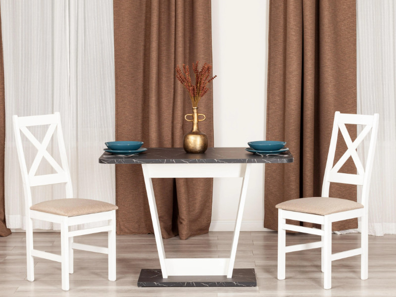 - Стол обеденный TIBI нераздвижной Мрамор черный/Белый