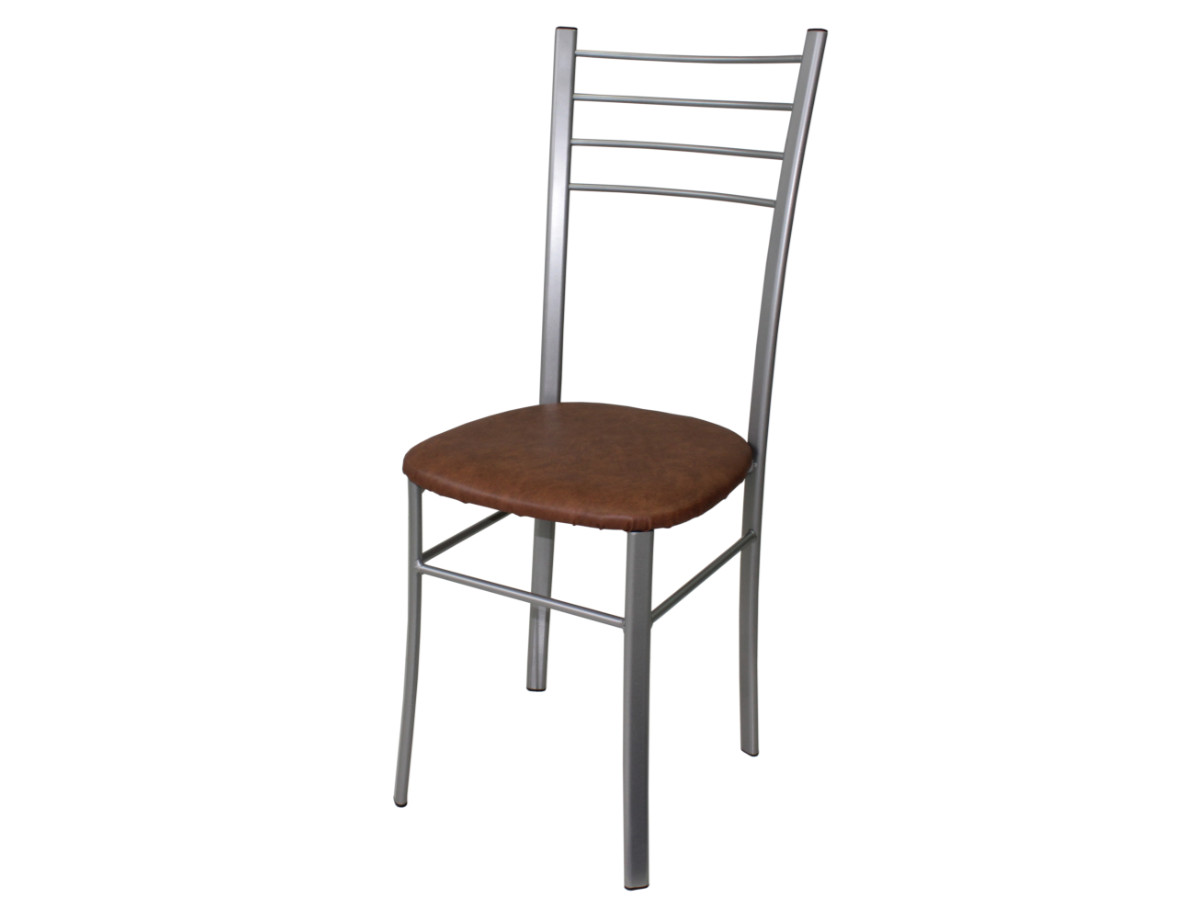 - Стул Лайт ДХ-5 на серебряном каркасе обивка коричневый