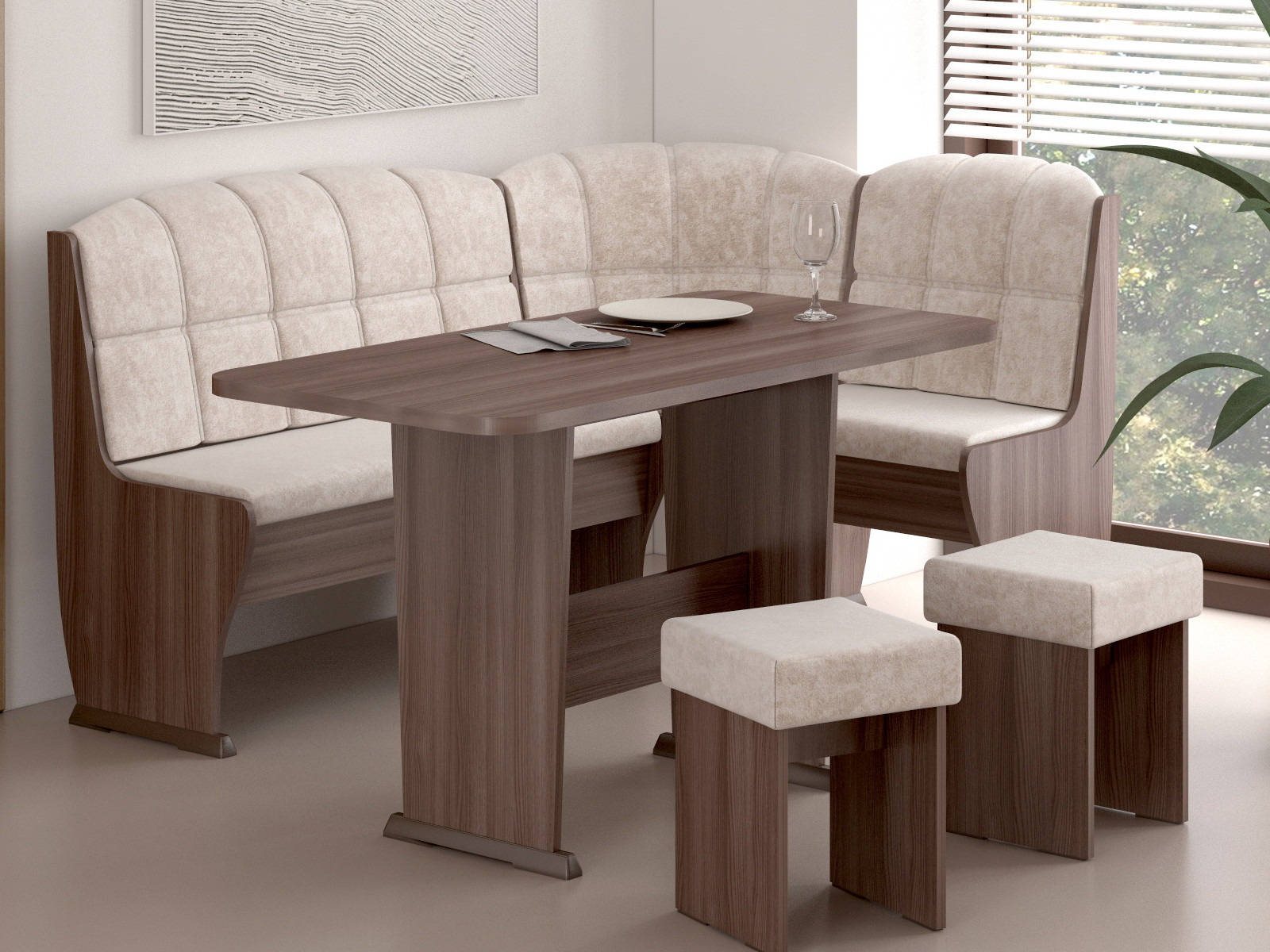 - Угловая скамья Ника 4 микровелюр бежевый