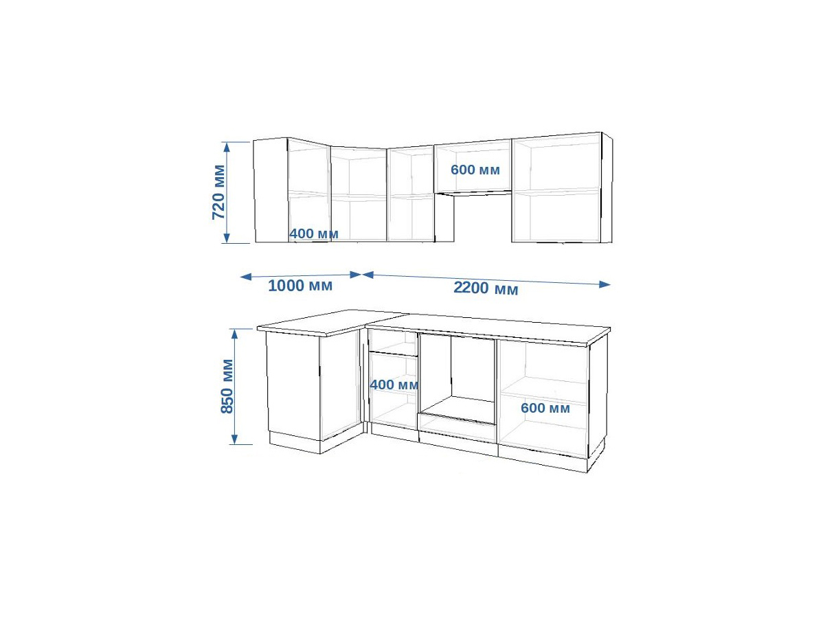 - высота верхних шкафов 720 мм