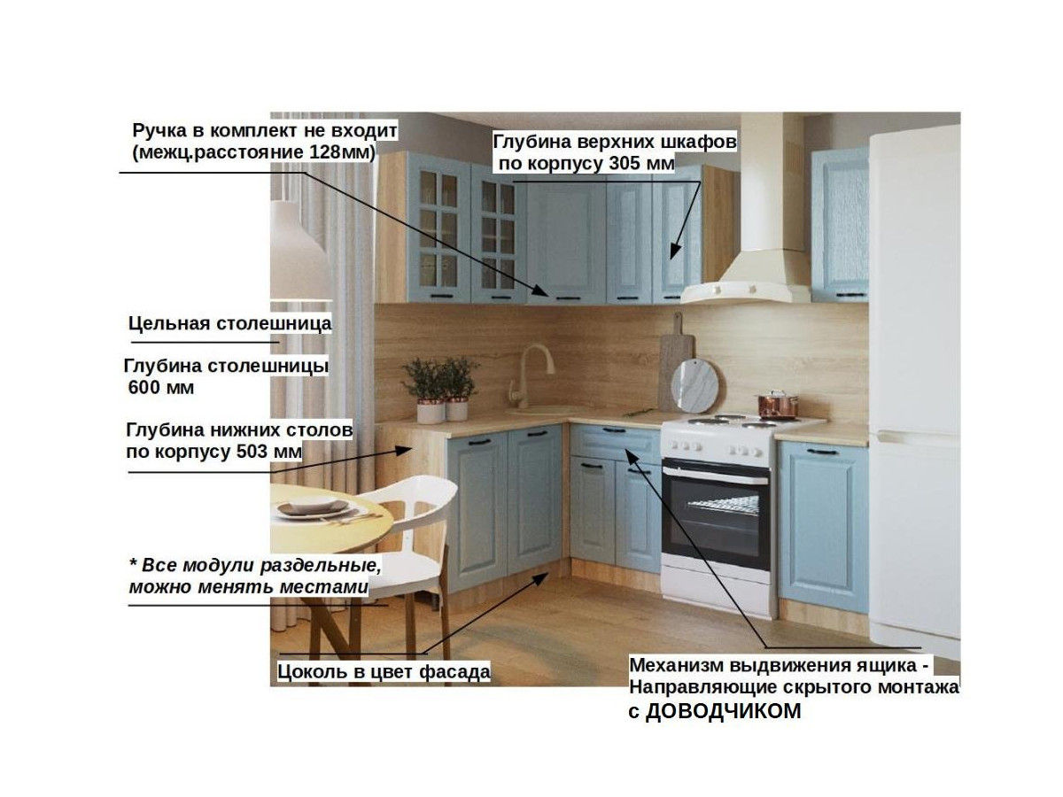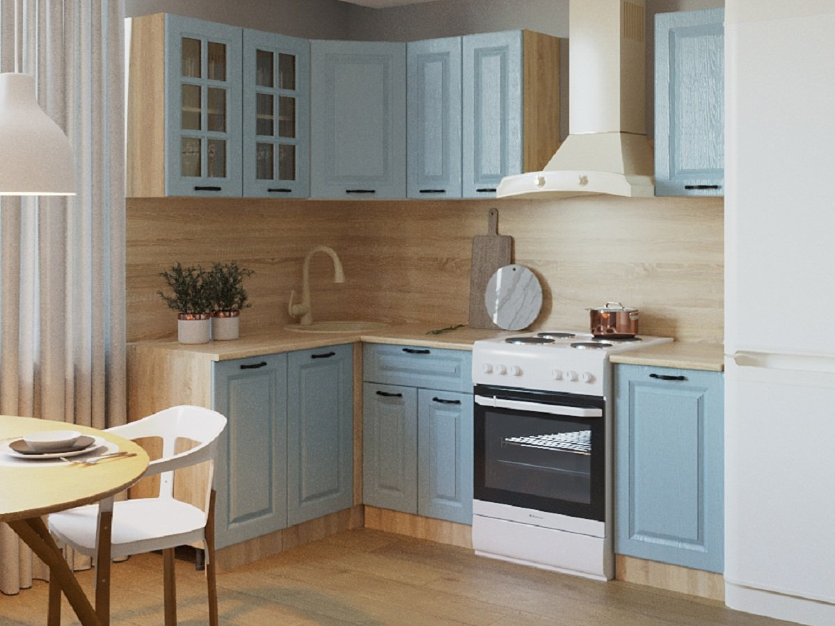 - Кухонный гарнитур арт 12 Роял Вуд Голубой Вегас 1400х1600 мм