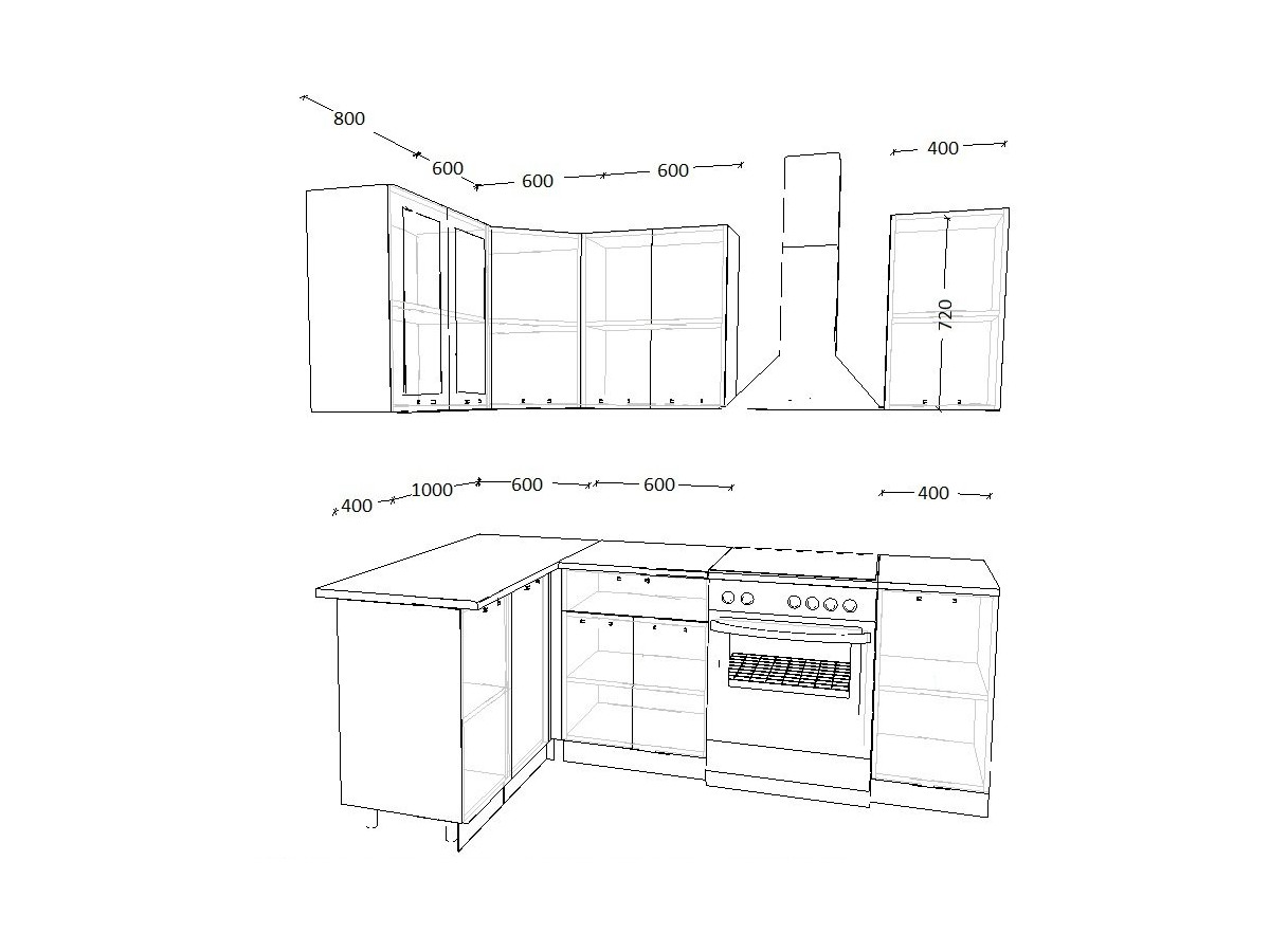 Кухонная мойка, стеновая панель, посудосушитель, планки для столешницы в комплект не входят.