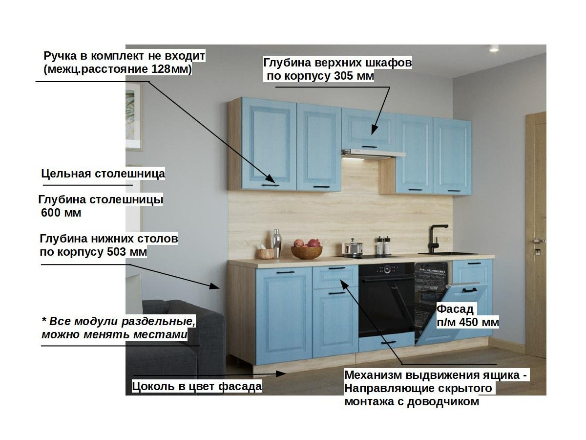 - Кухонный гарнитур арт 19 Роял Вуд Голубой Вегас 2450 мм