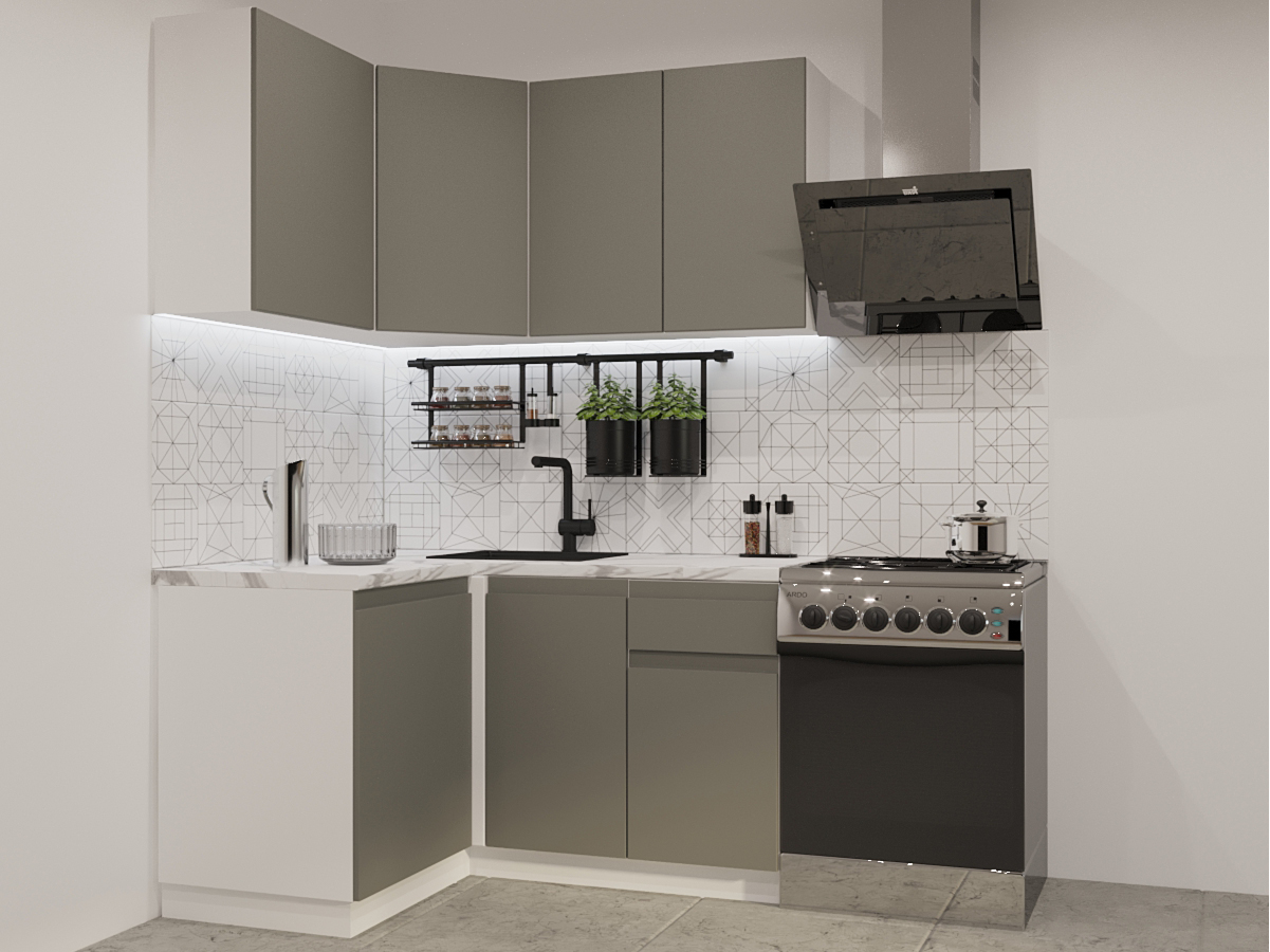 - Кухонный гарнитур арт 2 Лайн Обсидиан 1200х1400 мм
