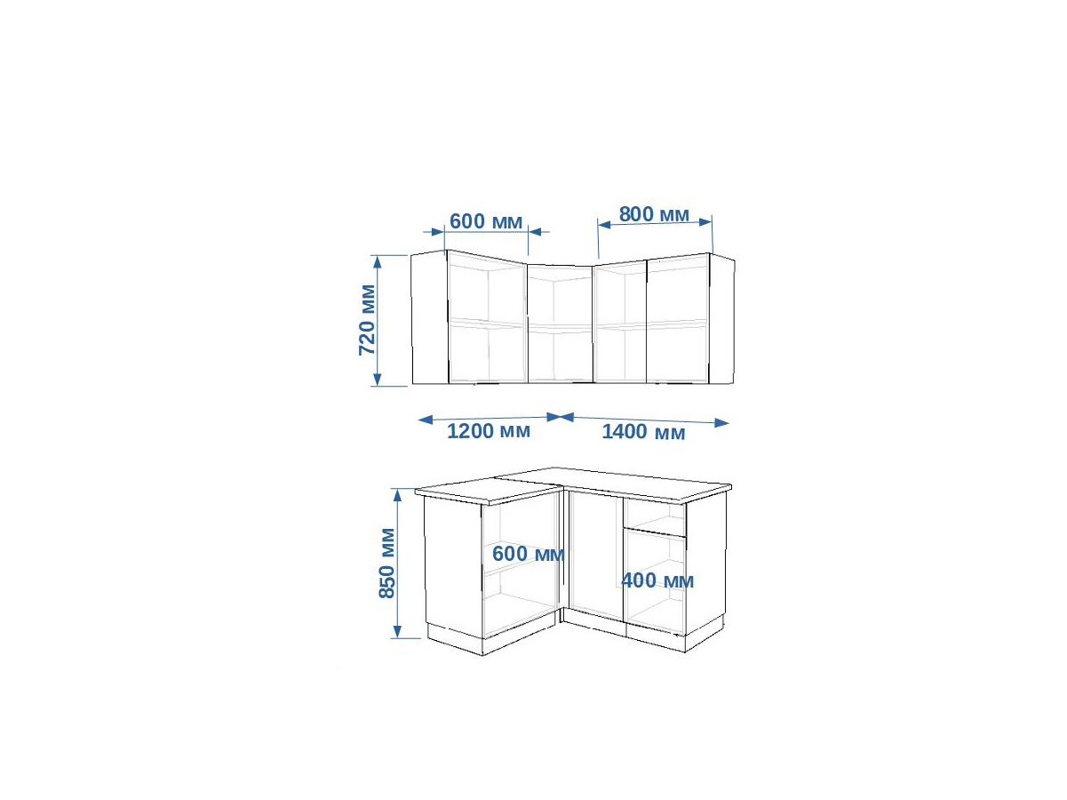 - высота верхних шкафов 720 мм
