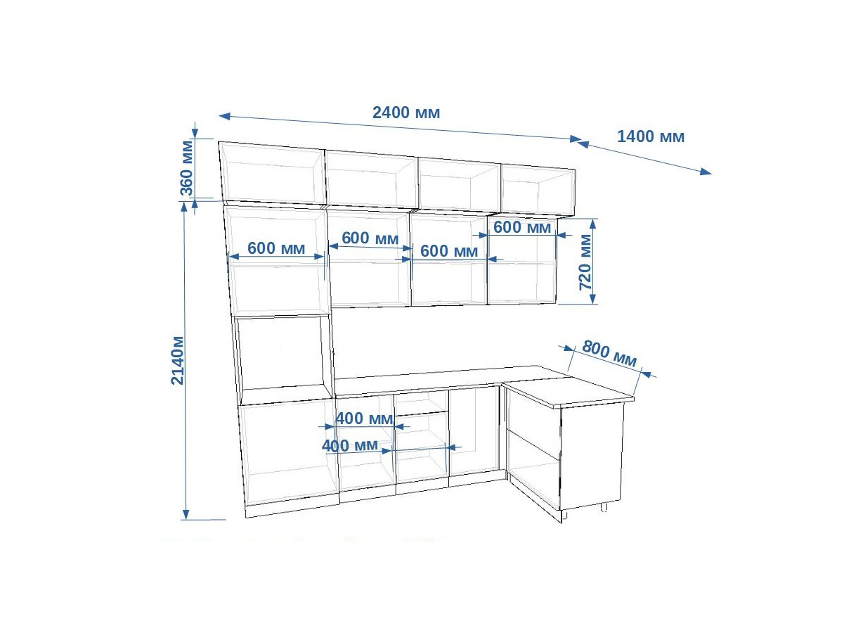 - Кухонный гарнитур арт 21 Лайн Обсидиан Тальк 2400х1400 мм