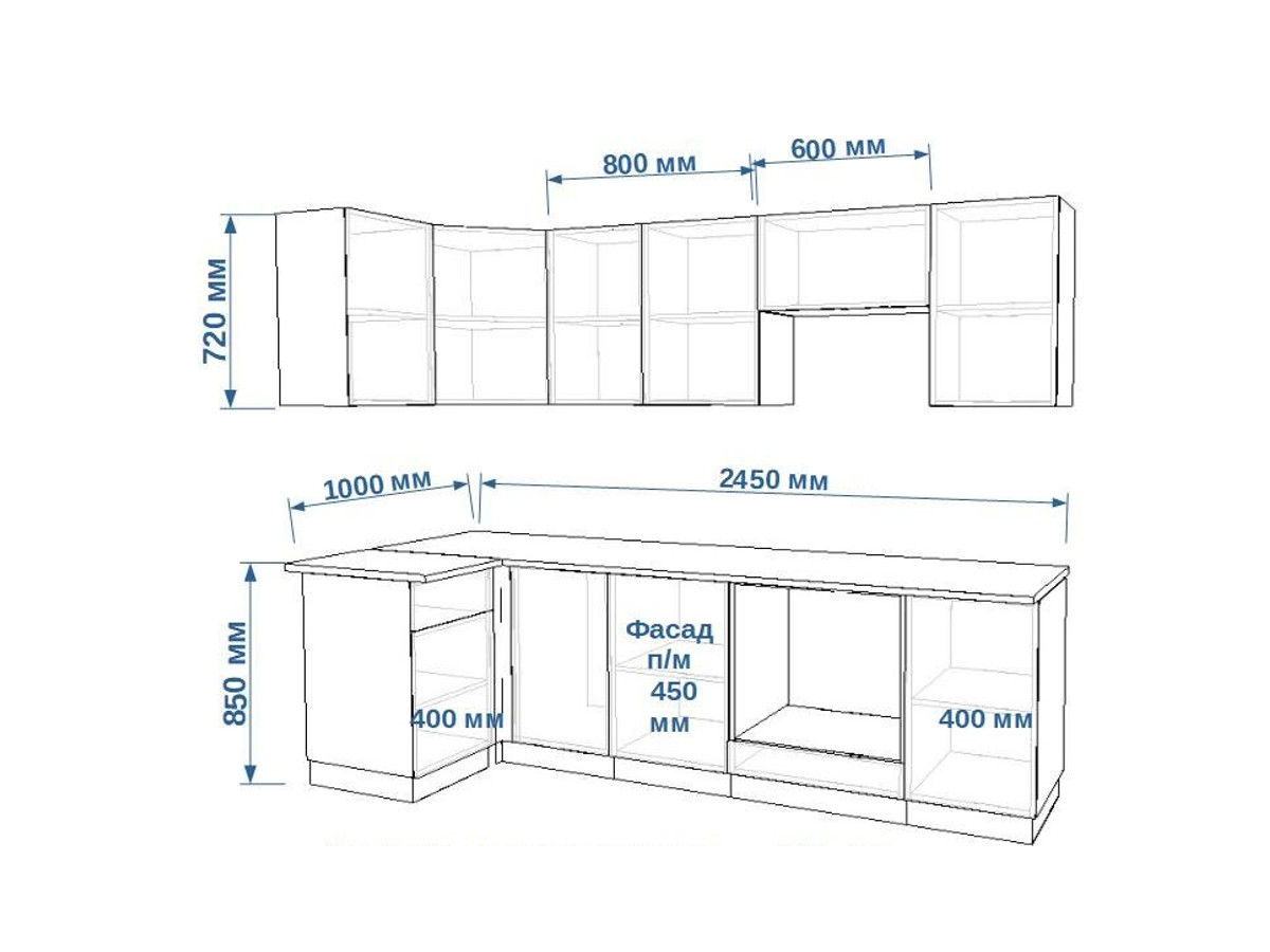 - высота верхних шкафов 720 мм