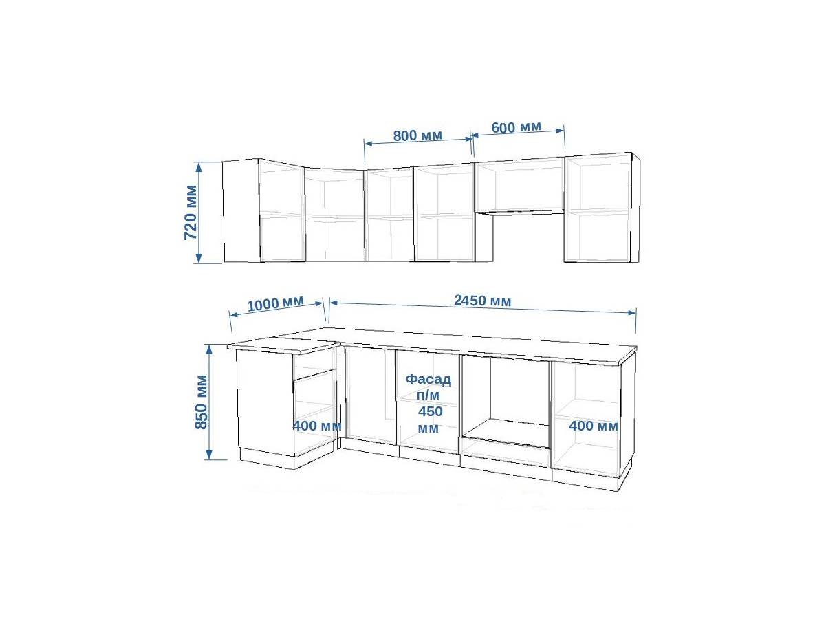 Кухонная мойка, стеновая панель, посудосушитель, планки для столешницы в комплект не входят.