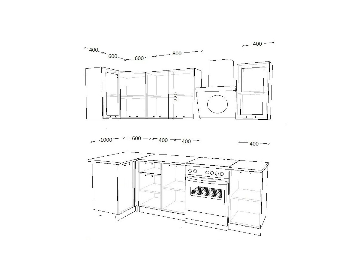 - высота верхних шкафов 720 мм