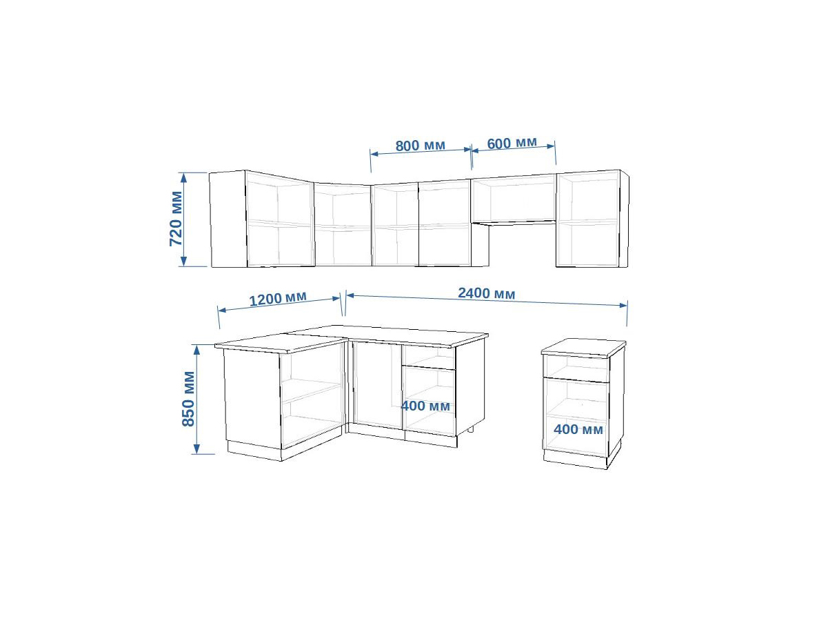 - Кухонный гарнитур арт 30 Лайн Обсидиан 1200х2400 мм