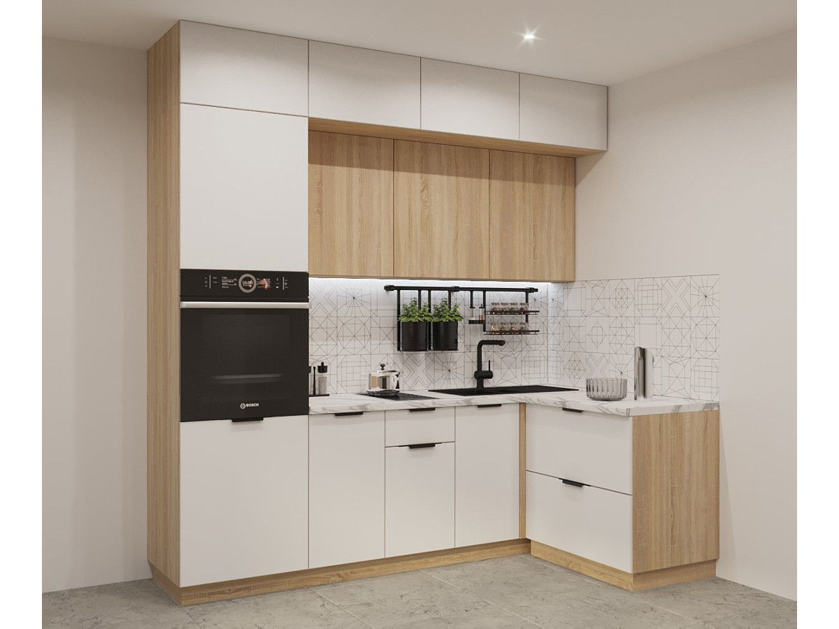 - Кухонный гарнитур арт 7 Фаска Тальк Дуб сонома 2300х1200 мм