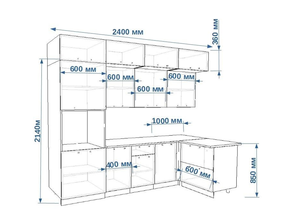 - высота верхних шкафов 720 мм