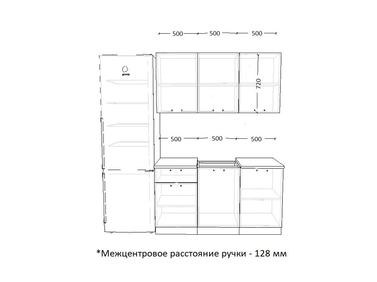 - высота верхних шкафов 720 мм