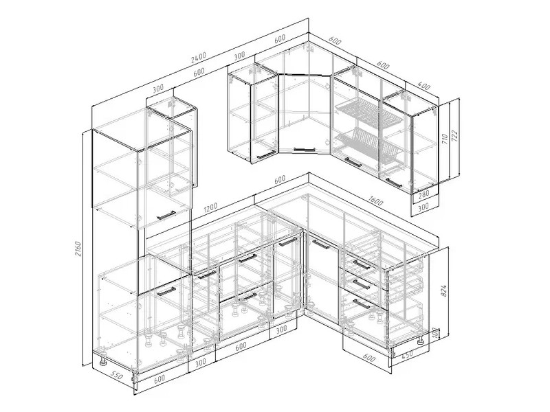 - Столешница: ЛДСП 26мм со скругленным краем (в пластике)