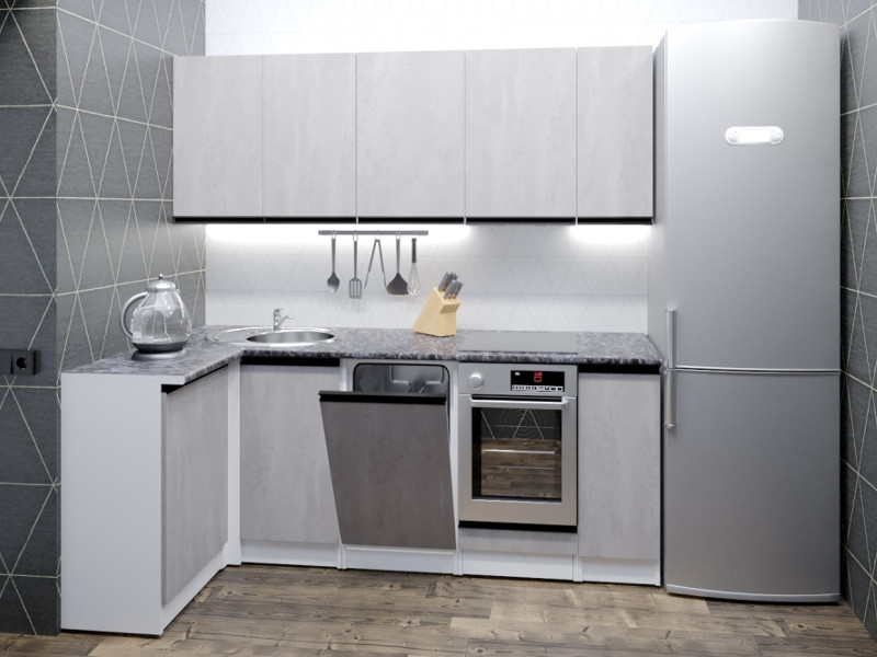 Мойка, смеситель, стеновая панель и посудосушитель в комплект гарнитура не входят.