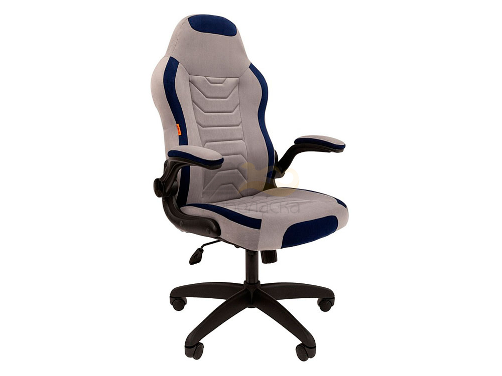 Кресло Chairman game 50 Россия серый/синий велюр Т53/Т82 пластик черный