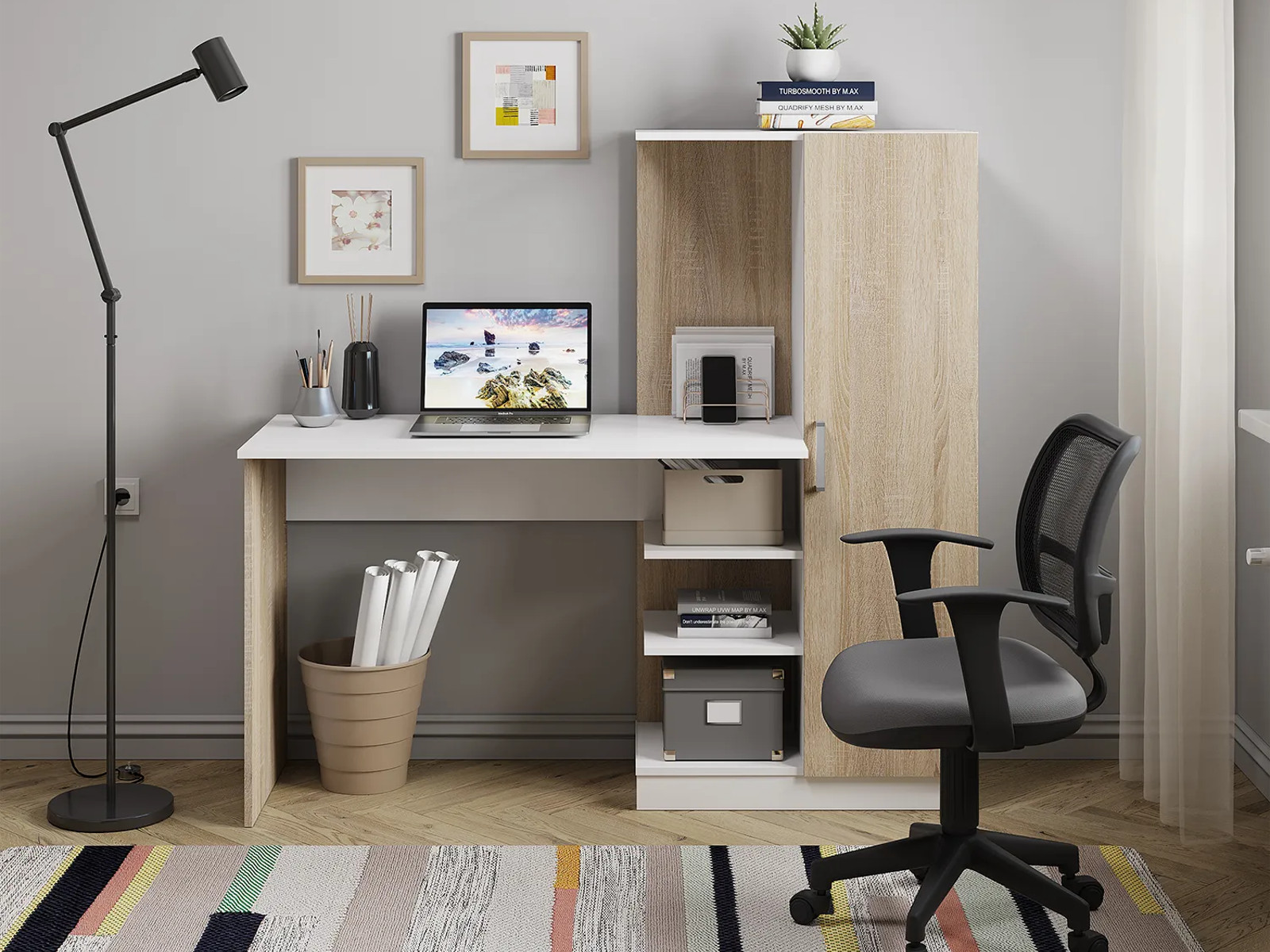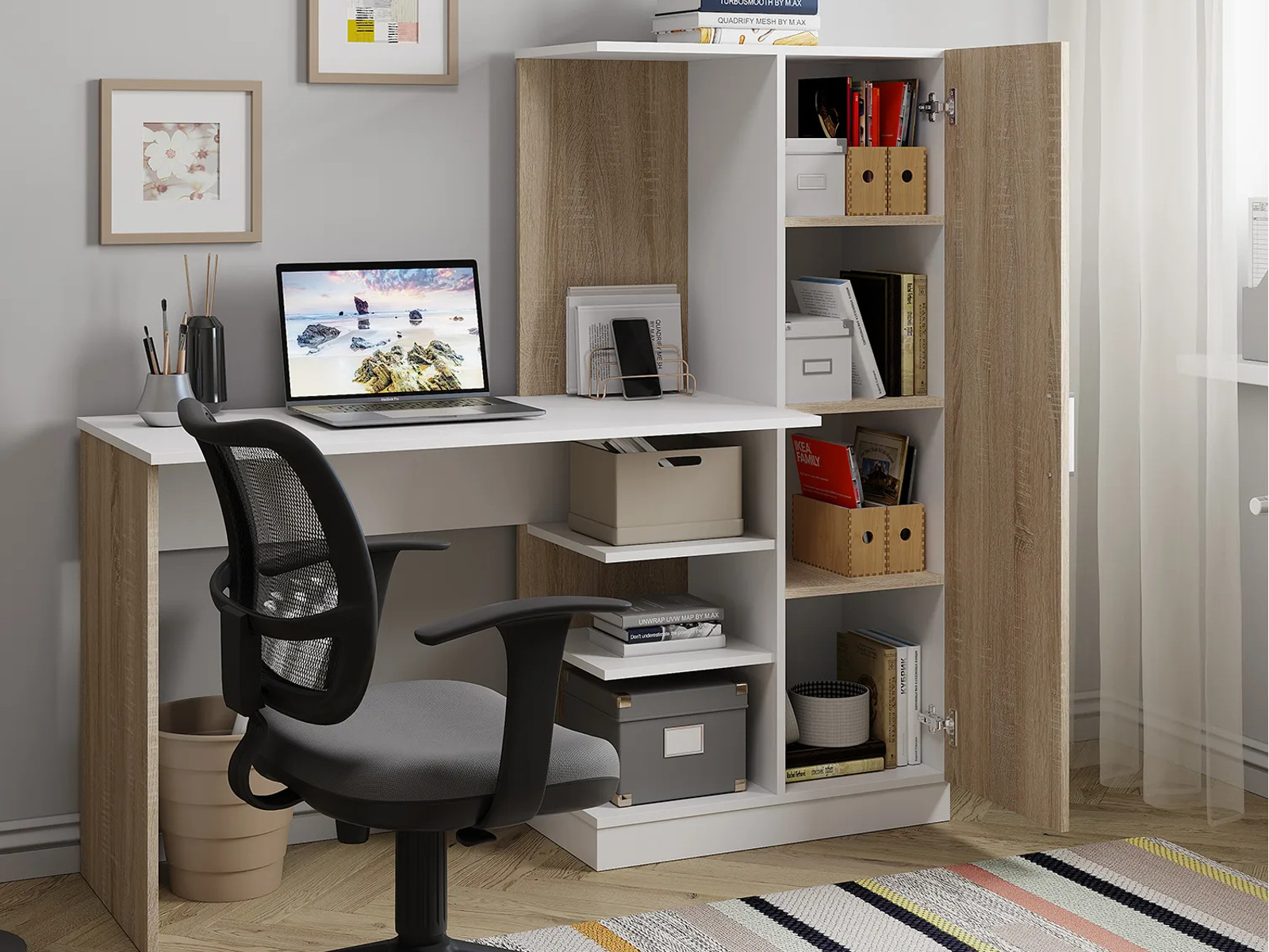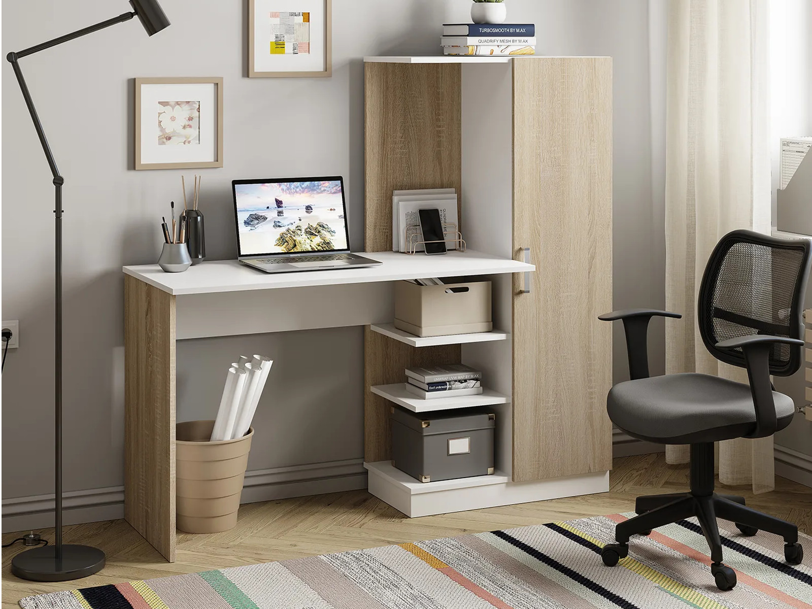 - Стол компьютерный Бейсик Сонома/белый