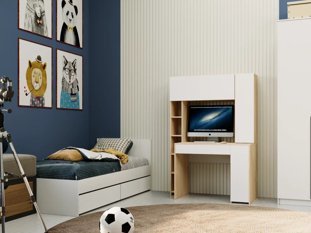 Стол письменный Монблан с надстройкой Дуб сонома-Белый