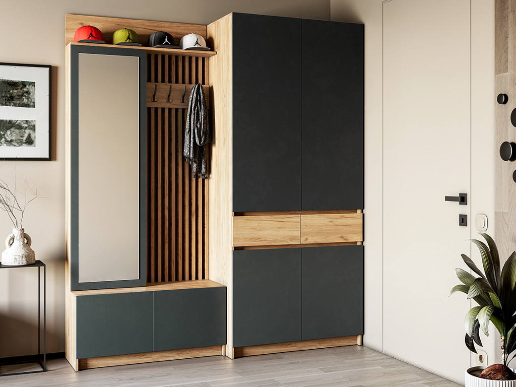 - Модульная прихожая Стоуби с двухдверным шкафом фасад серый графит