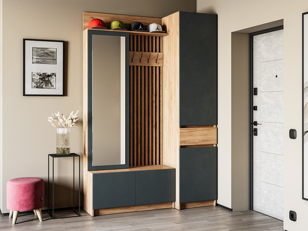 - Модульная прихожая Стоуби с пеналом фасад серый графит