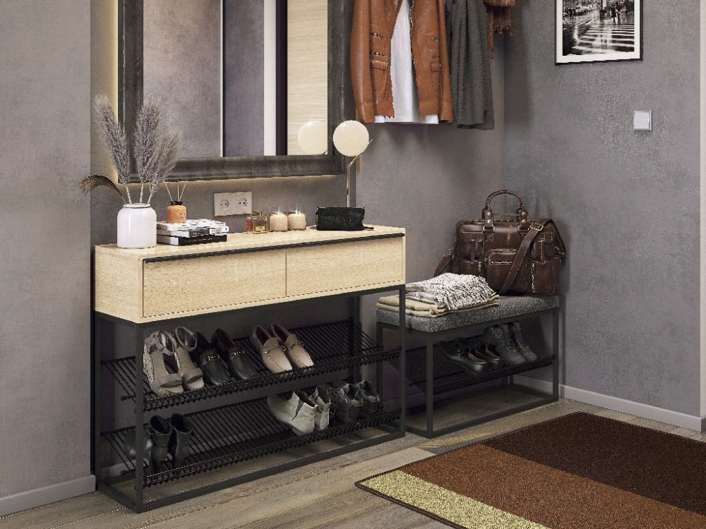 Удобная обувница в стиле Лофт из алюминевого профиля.