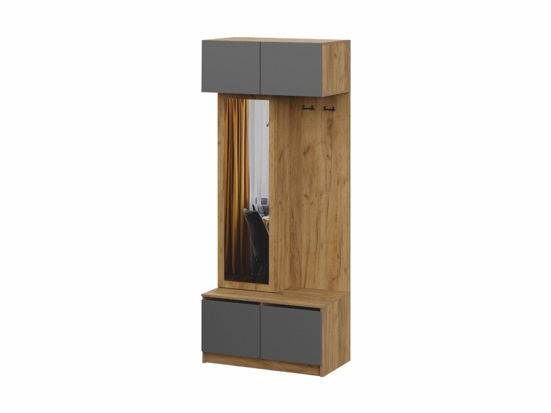 - Секция для одежды с крючками и зеркалом Сити в прихожую