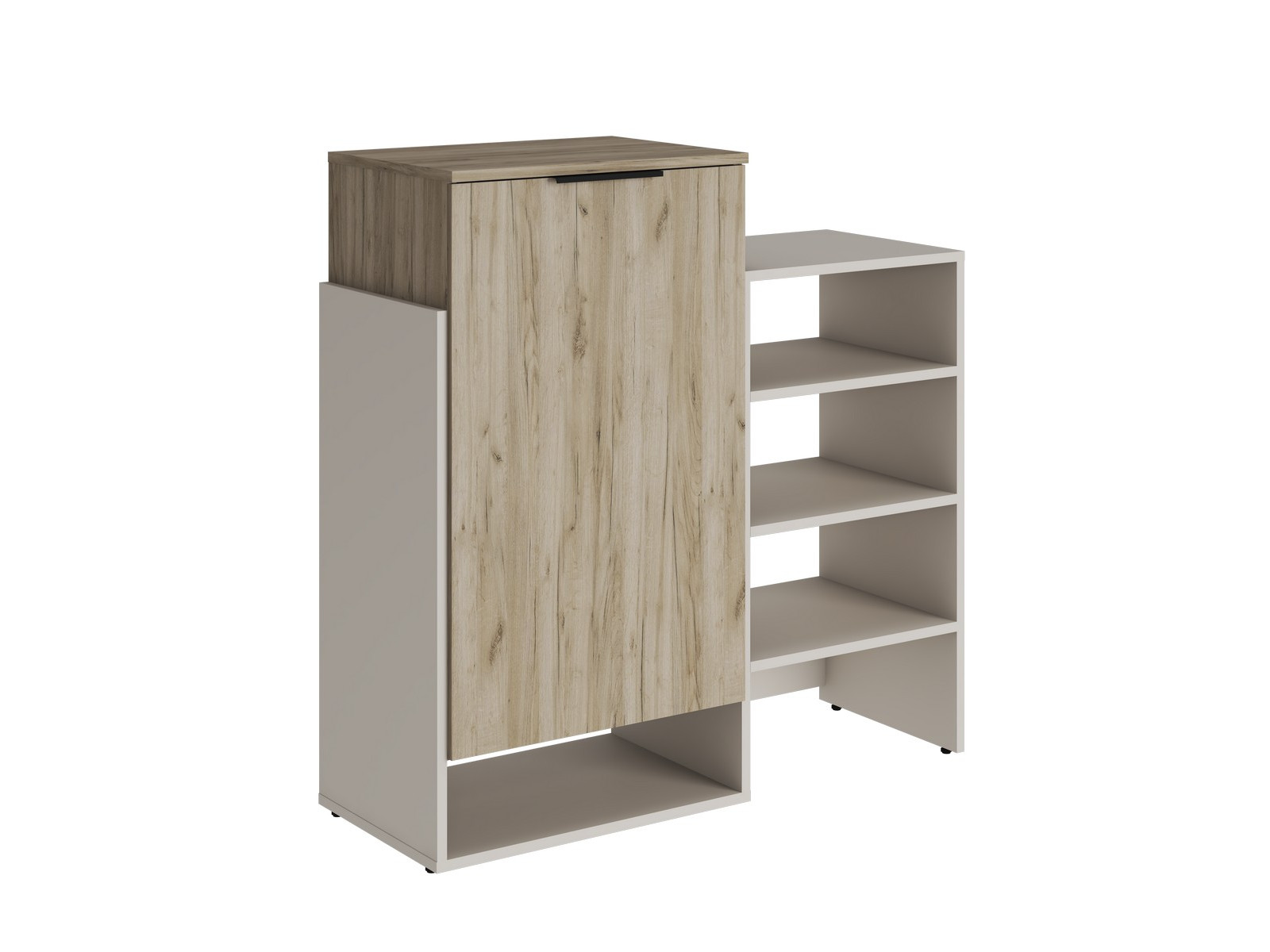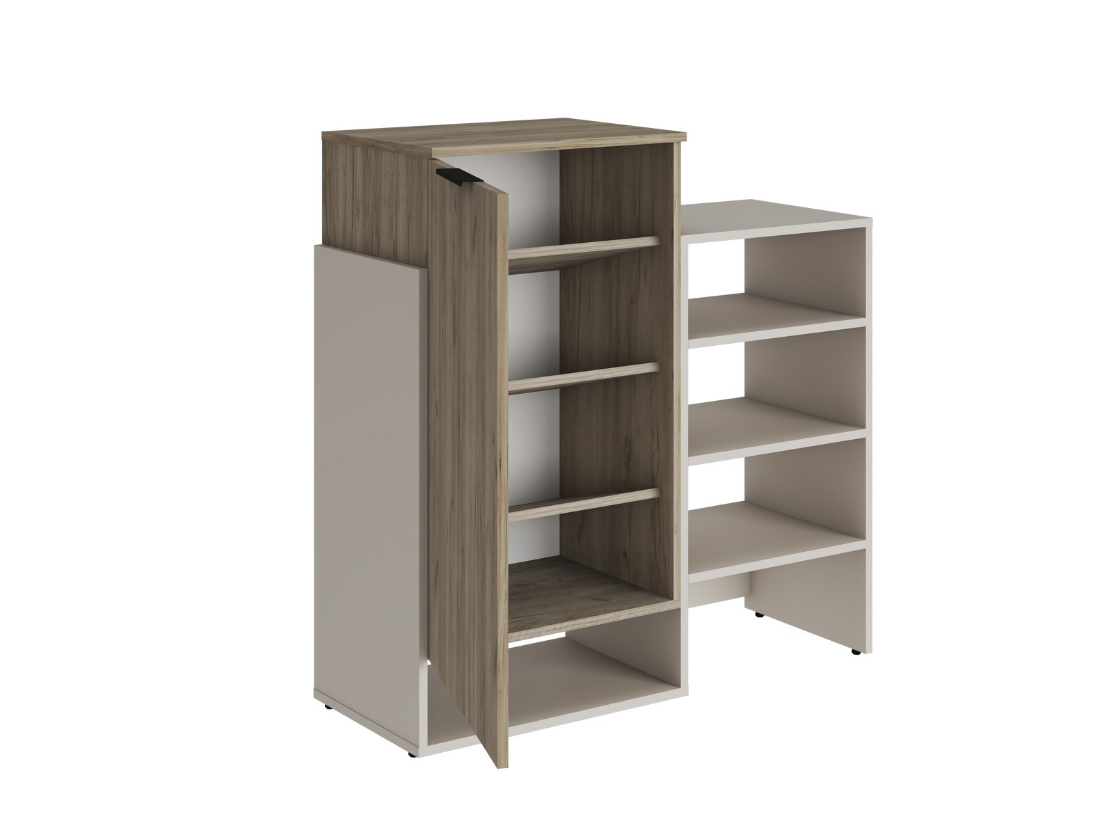 Тумба-комод ТМ-001может использоваться как комод или как обувница путем установки полок в горизонтальном или наклонном положении в закрытом парящем модуле.