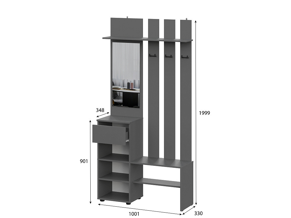 Размер ШхВхГ: 1001*2000*348 мм