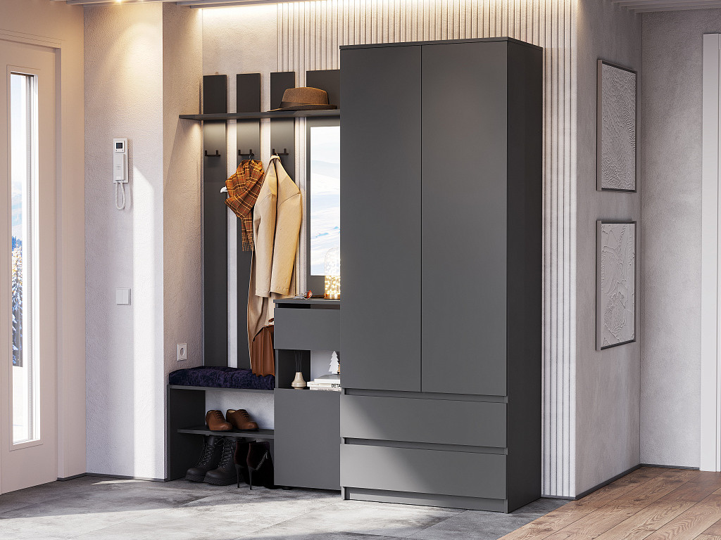 - Вешалка с зеркалом Денвер Графит серый