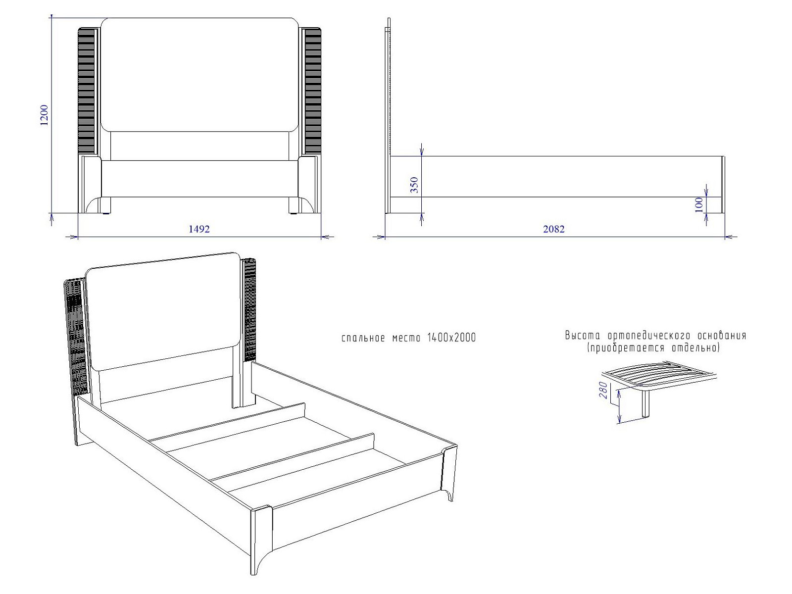 Спальное место: 1400*2000 мм