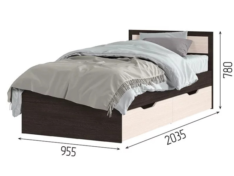Кровать Гармония с ящиками 90х200 см Венге/Дуб белфорд