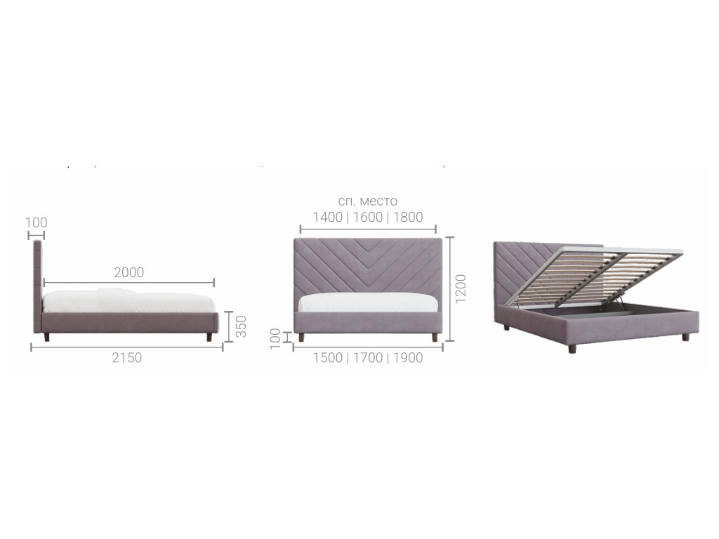 Кровать имеет подъемное ортопедическое основание и короб с дном из МДФ.