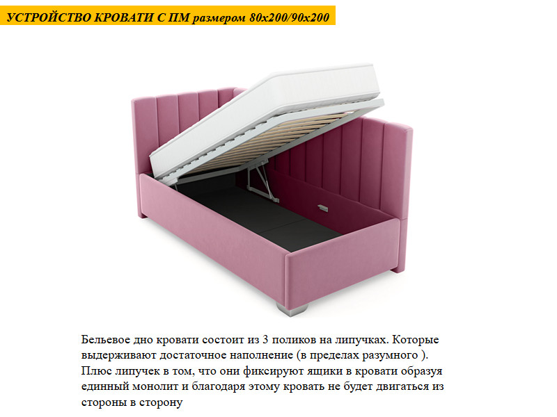 - Кровать Модерн Плюс 90х200 мм с подъемным основанием