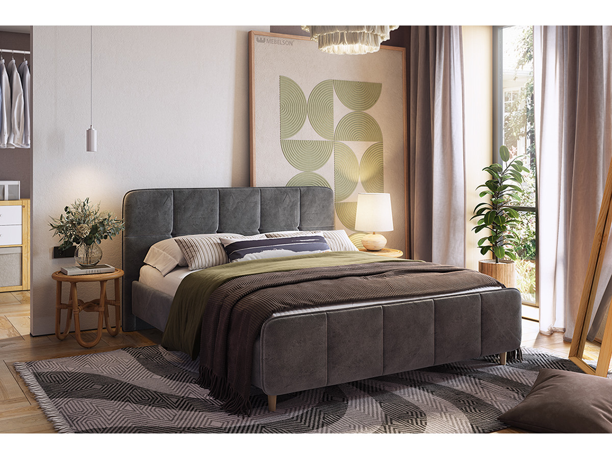 - Кровать с основанием Грета грей алькантара