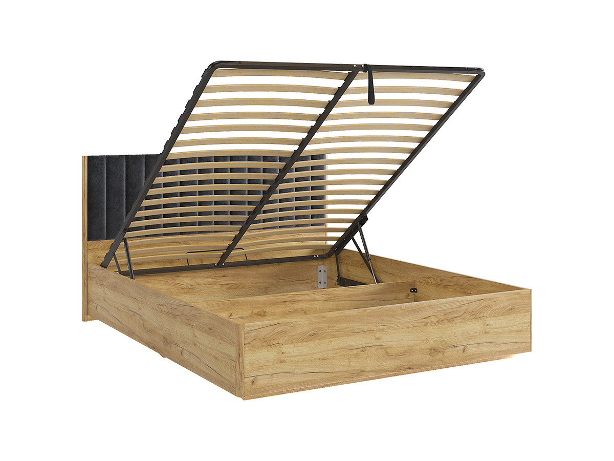 - Кровать с подъемным механизмом Адам дуб крафт золотой/грей алькантара