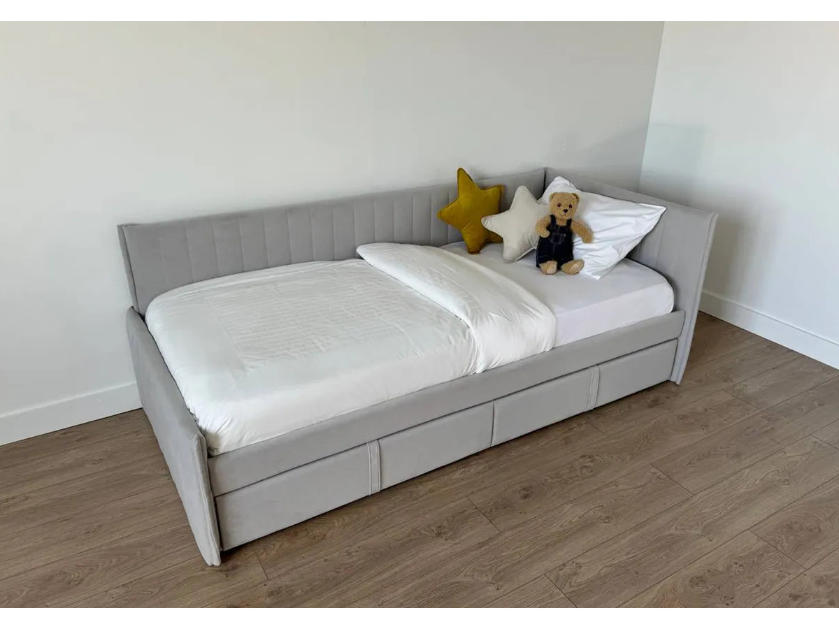 Кровать-тахта с ящиками Твикс цвет велюра галька