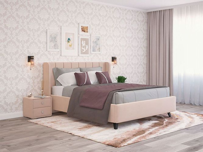 - Кровать Виола с ПМ 1800х2000 мм микровелюр бежевый