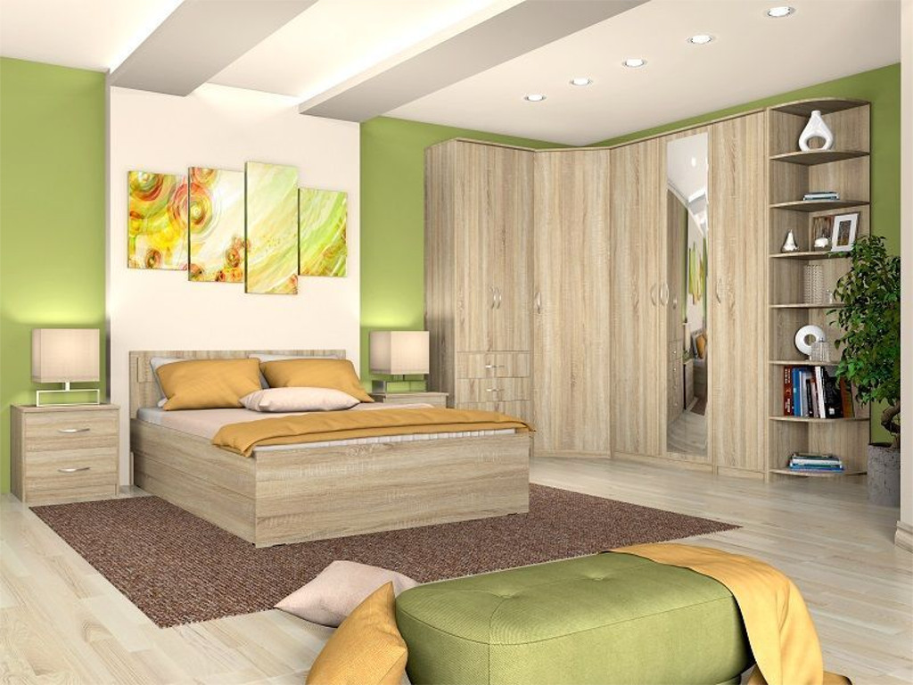 Состав комплекта: кровать-1200, шкаф угловой (без зеркала), шкаф 2-х ств. (с зеркалом) , пенал, шкаф универсальный, тумба прикроватная - 2шт