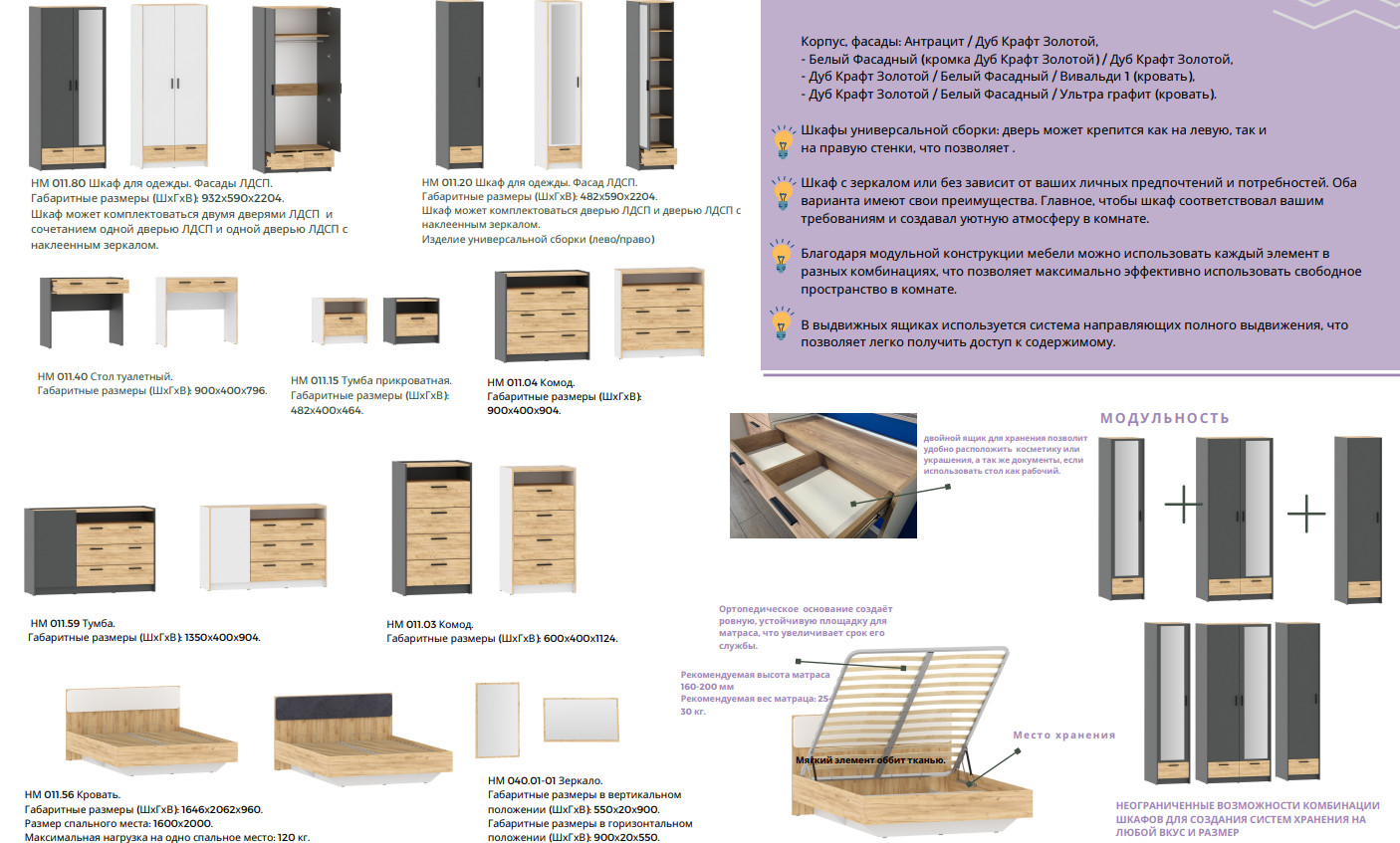 - НМ 011.20 Шкаф для одежды (фасад с зеркалом) Ш 482 X Г 590 X В 2204 ( 71,7 кг; 0,157 м3)