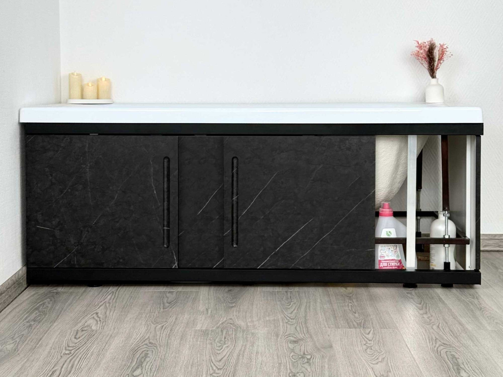 - Экран под ванну МДФ Alt Black 1700 мм черный мрамор