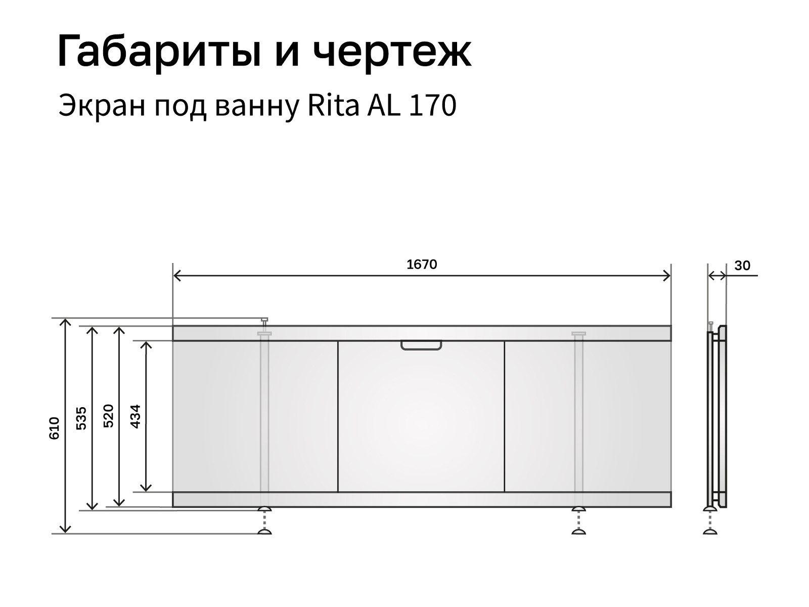 - Экран под ванну МДФ Rita AL 1700 мм