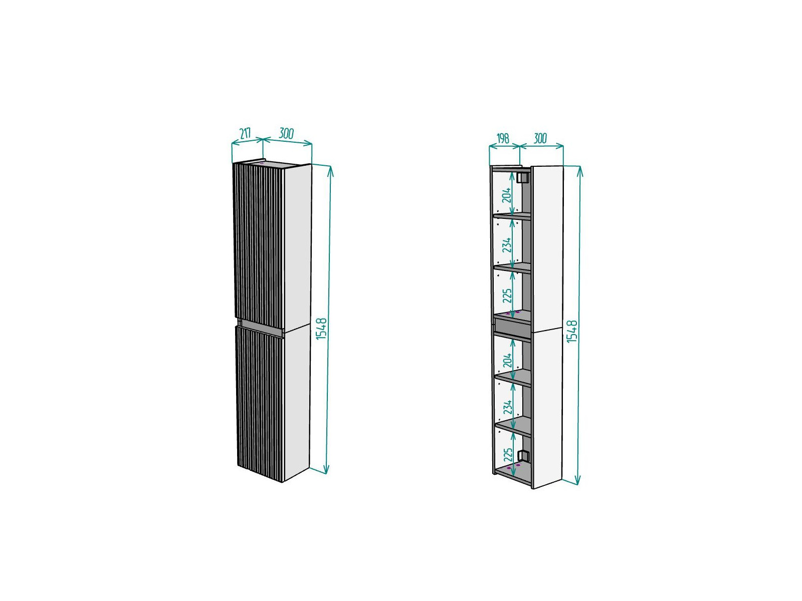 Размер ВхШхГ: 1548х300х217 мм