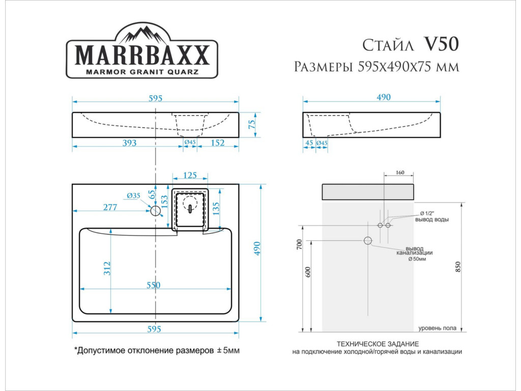 Материал: Материал-литьевой мрамор;раковина устанавливается на кронштейны над стиральной машиной(не допустимо монтировать на столешницу стиральной машины).