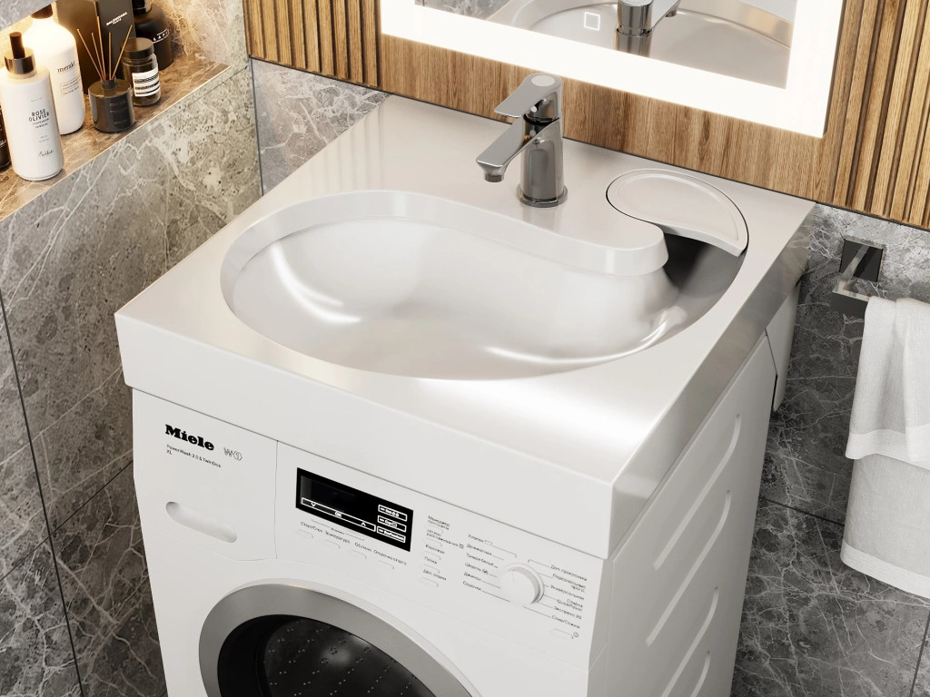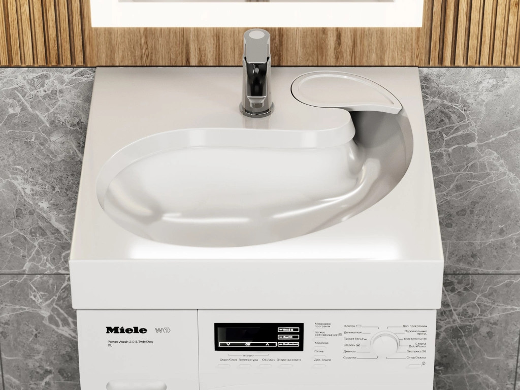 - Раковина над стиральной машиной Uperwood Comforty белая глянцевая